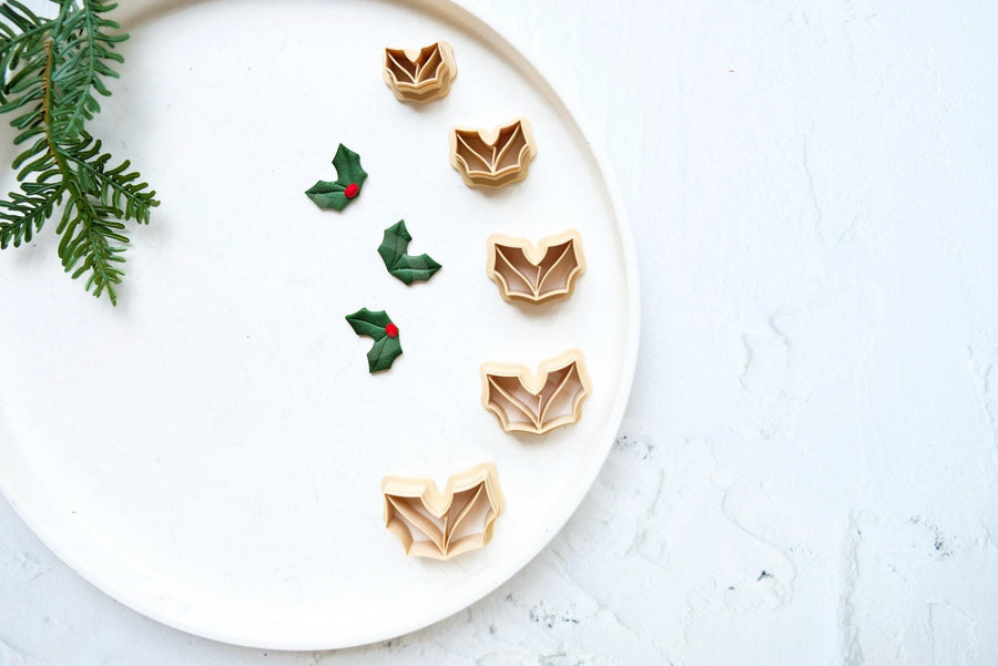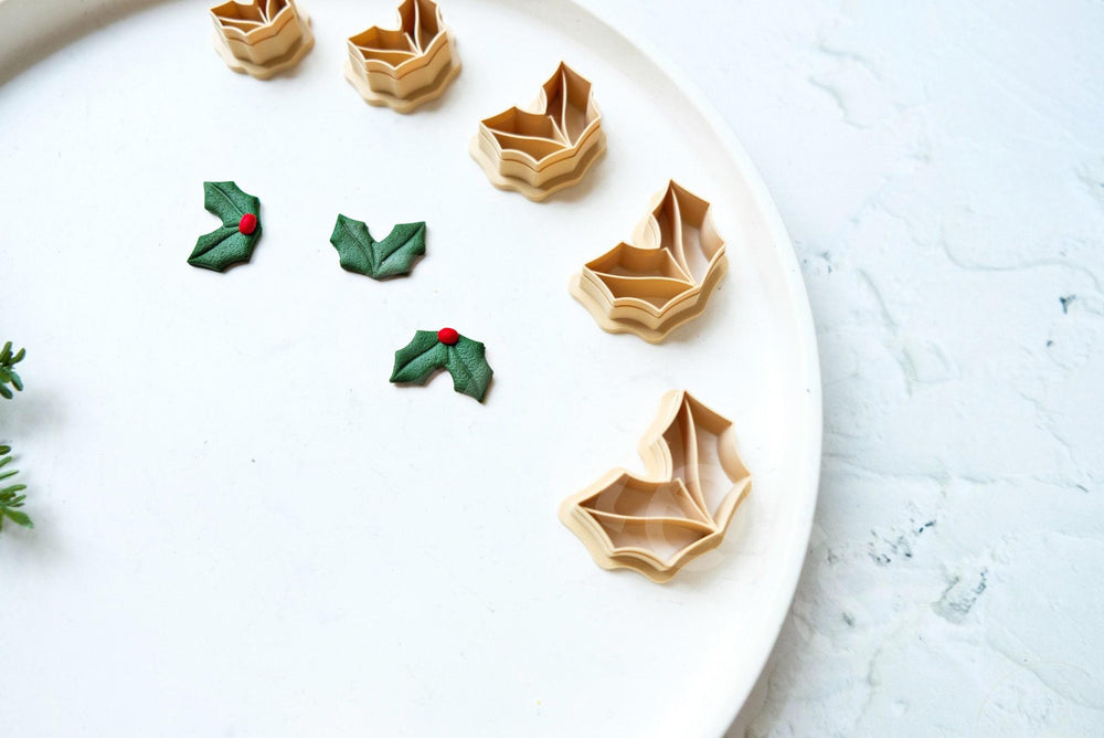 Christmas Holly Leaf Clay Cutters: Polymer Clay Earrings, Cookie Dough