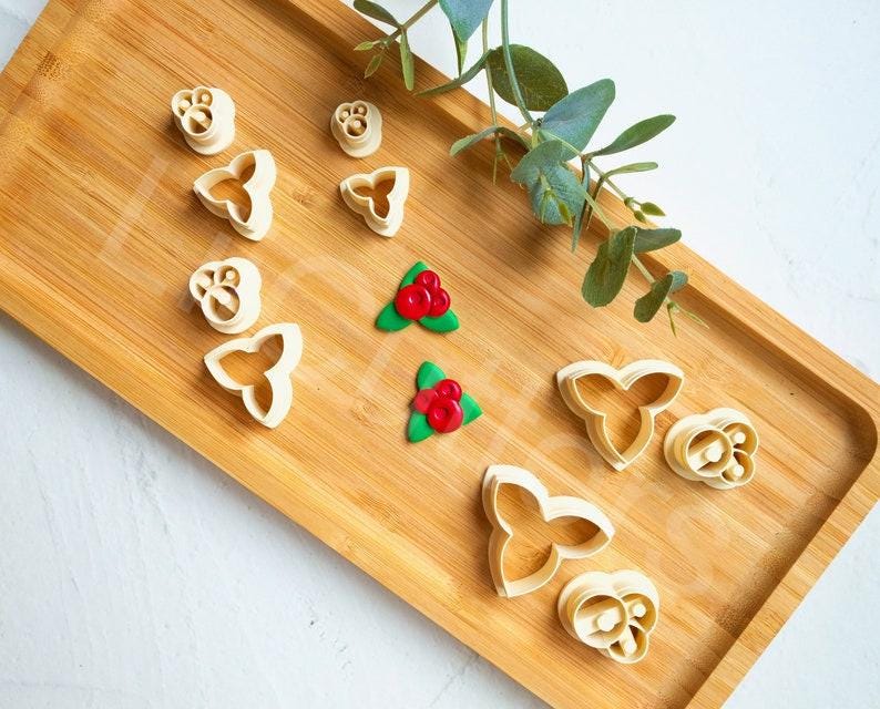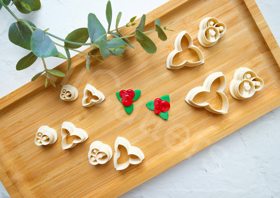 Christmas Leaf Polymer Clay Cutter: Cranberry & Holly Earring Tool