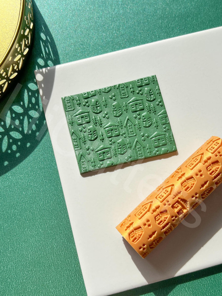 Christmas Houses Polymer Clay Roller: Seamless Texture Pattern