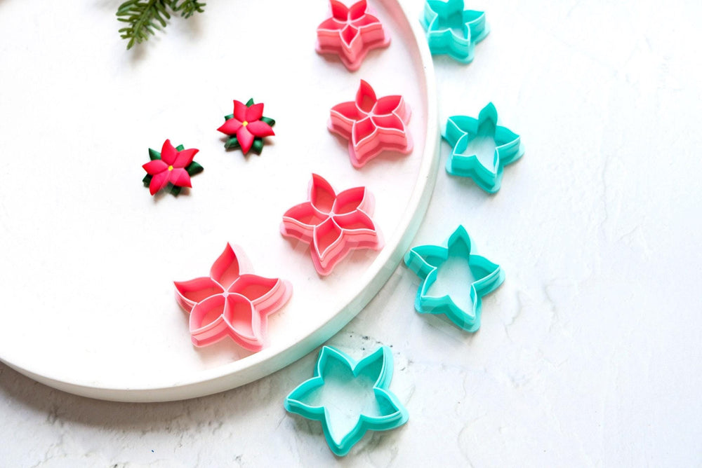 Christmas Poinsettia Clay Cutter Set: Flower Embossed Design
