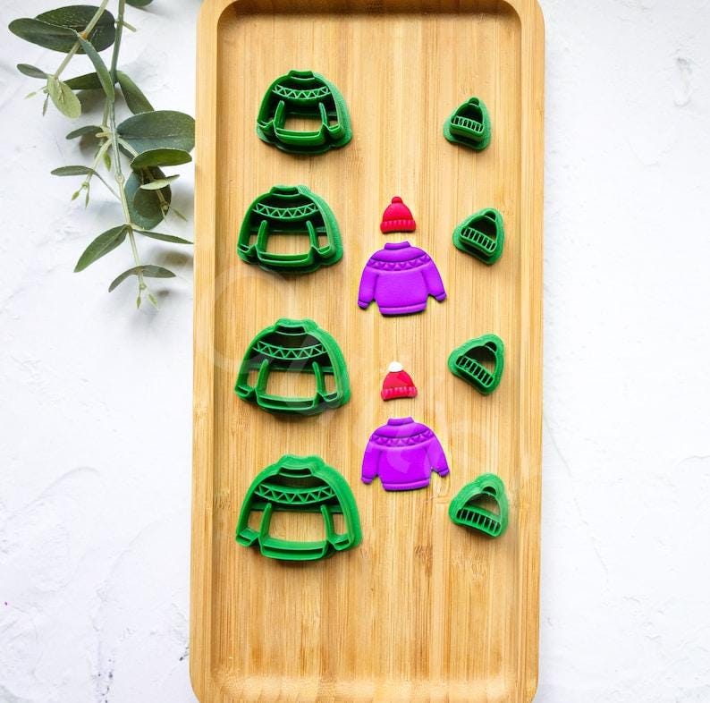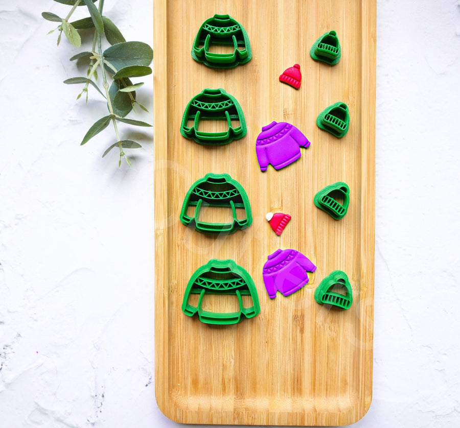 Christmas Sweater & Hat Clay Cutter Set: 3D Printed Earring Cutters