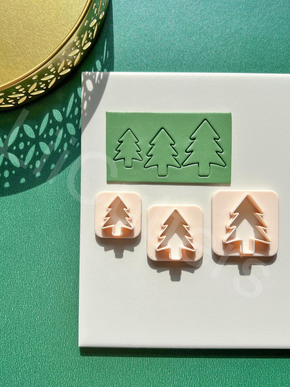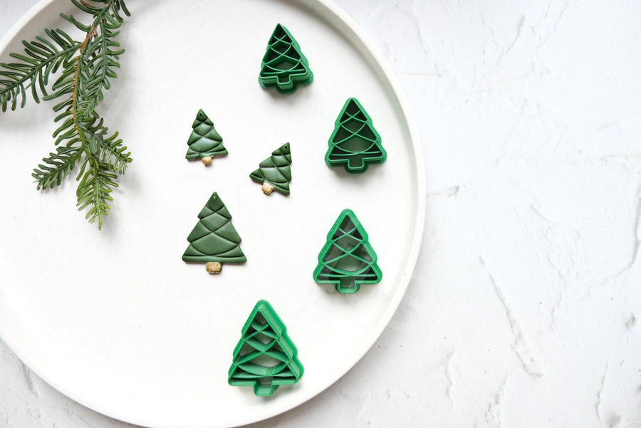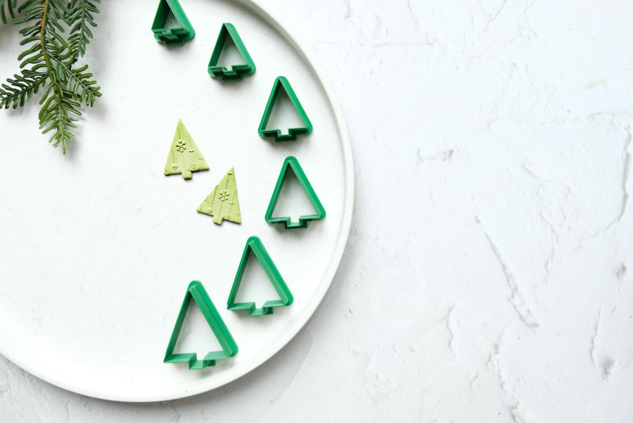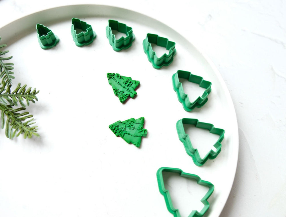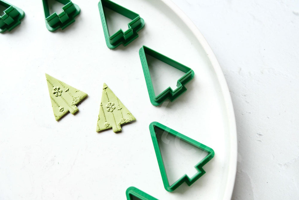 Christmas Tree Clay Cutter Set: Embossed Design, Polymer Clay Earrings
