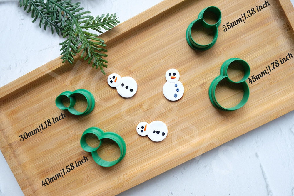 Christmas Snowman Clay Cutter Set: Polymer Clay Earrings, Cookie Dough (30-45mm)