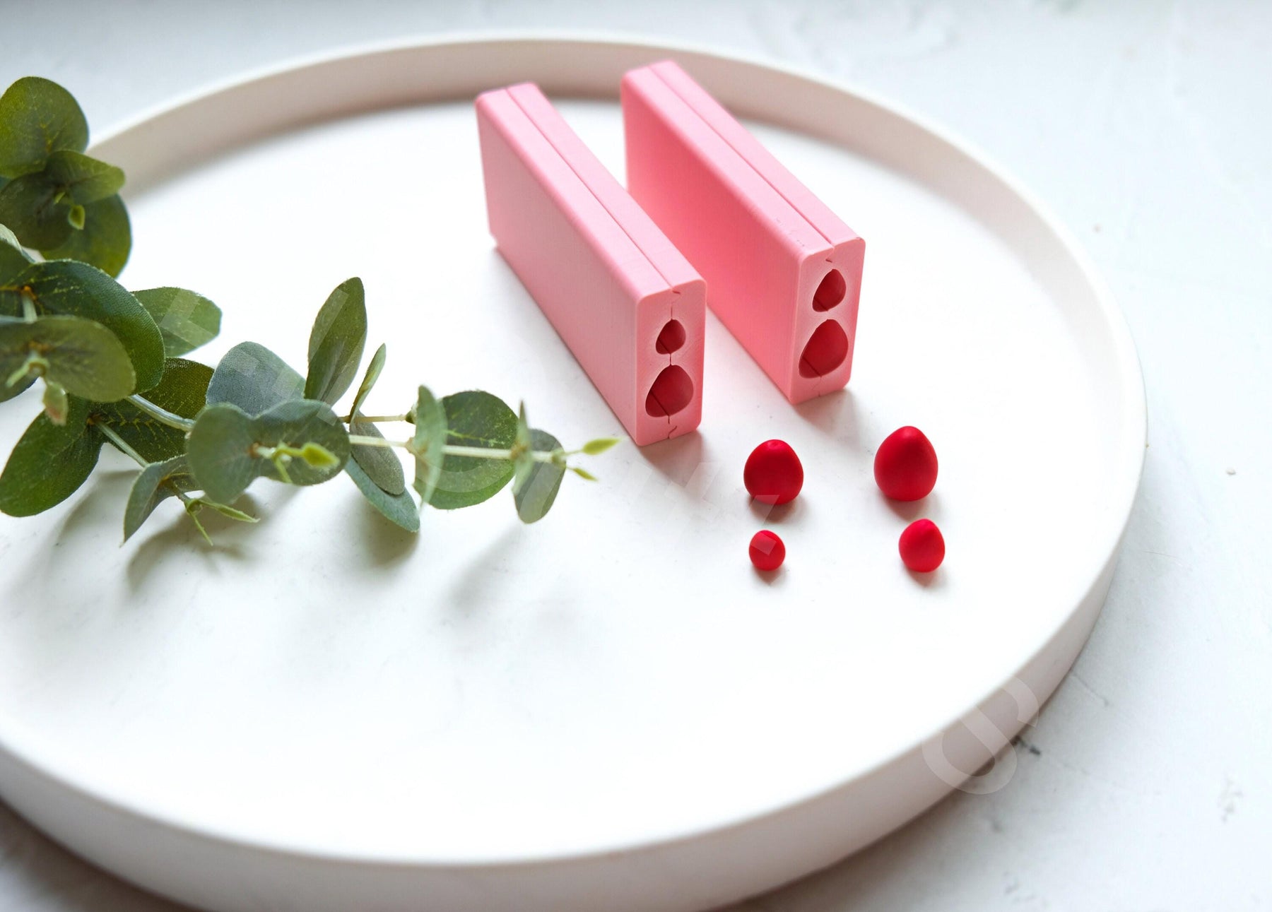 These bead rollers create polymer clay into drops of 8mm , 10mm, 13mm and 15mm in diameter.