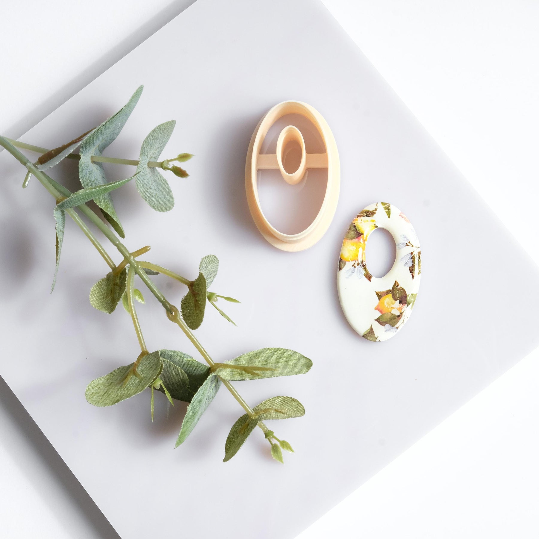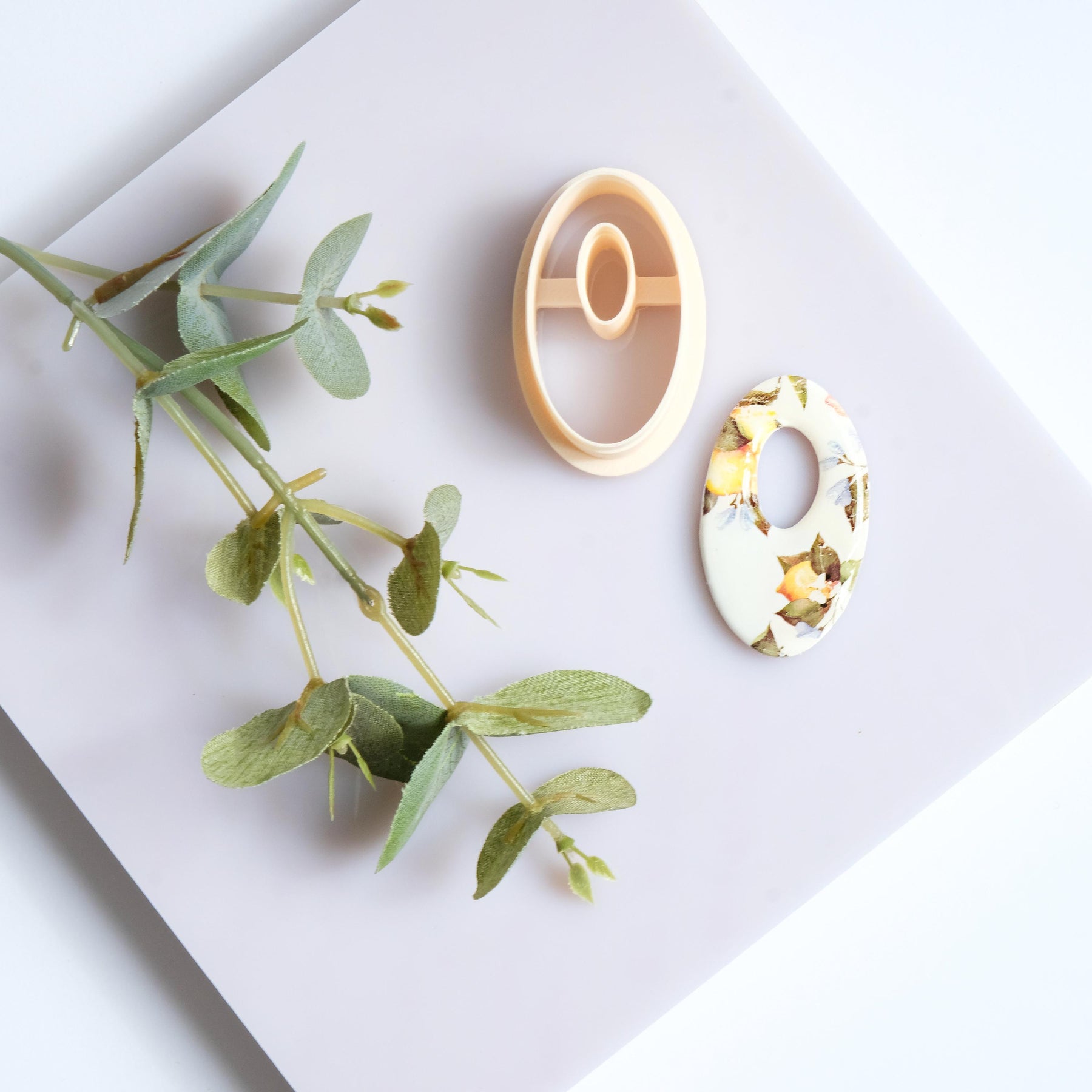 Geometric Oval Polymer Clay Cutter with Hole – Earring Making Tool, Modern Minimalist Jewelry Mold, DIY Polymer Clay Accessories