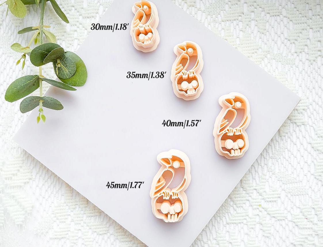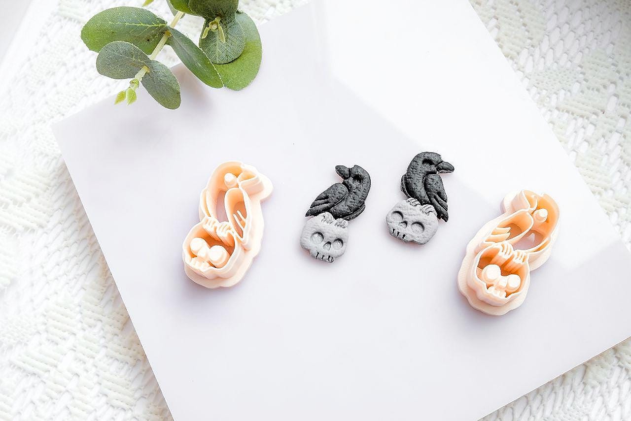 Add a touch of dark elegance to your handmade earrings with our Raven on Skull Polymer Clay Cutter. Perfect for Halloween, gothic, or alternative-style jewelry, this unique cutter creates intricate designs of a crow perched on a skull – ideal for spooky-season collections or year-round statement pieces.