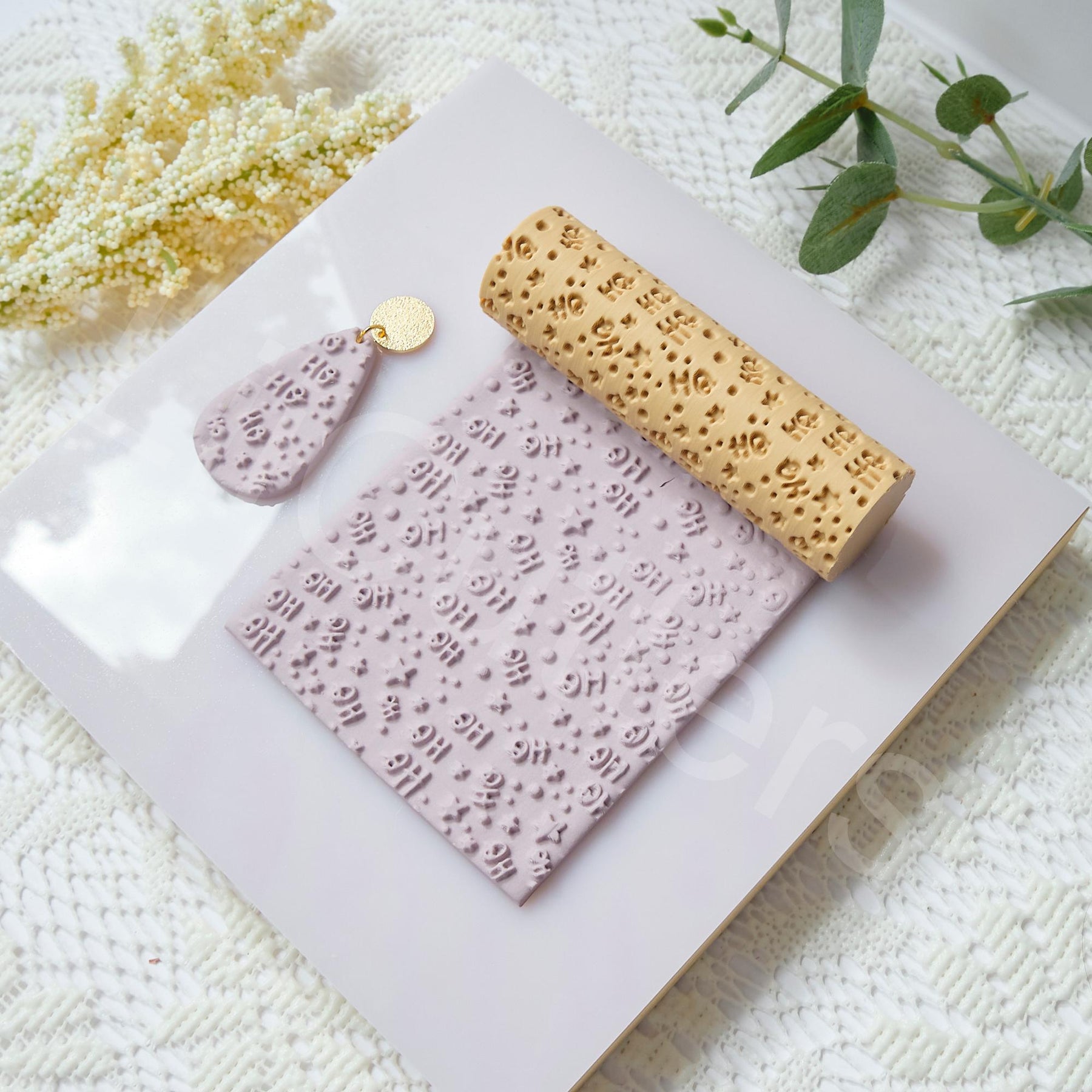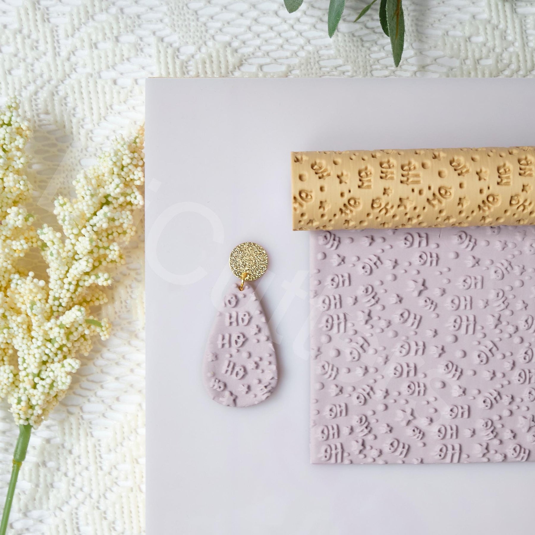 Christmas Ho Ho Pattern Clay Roller, Ho Pattern Clay roller, Seamless Clay texture, Polymer clay roller,pattern roller, Earring making tool