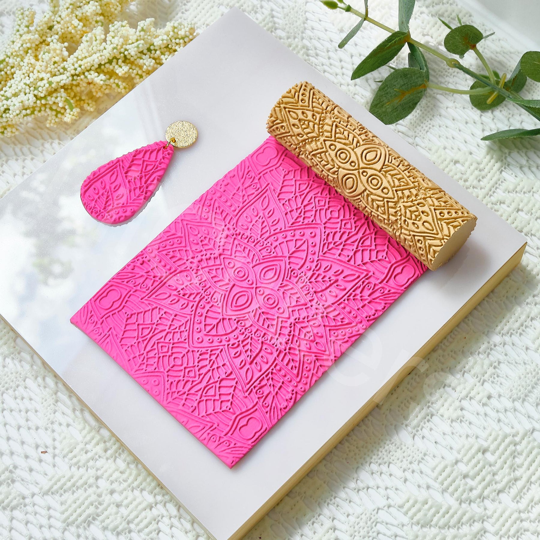 Ethnic Flower Pattern Clay Roller: Seamless Texture, Earring Tool