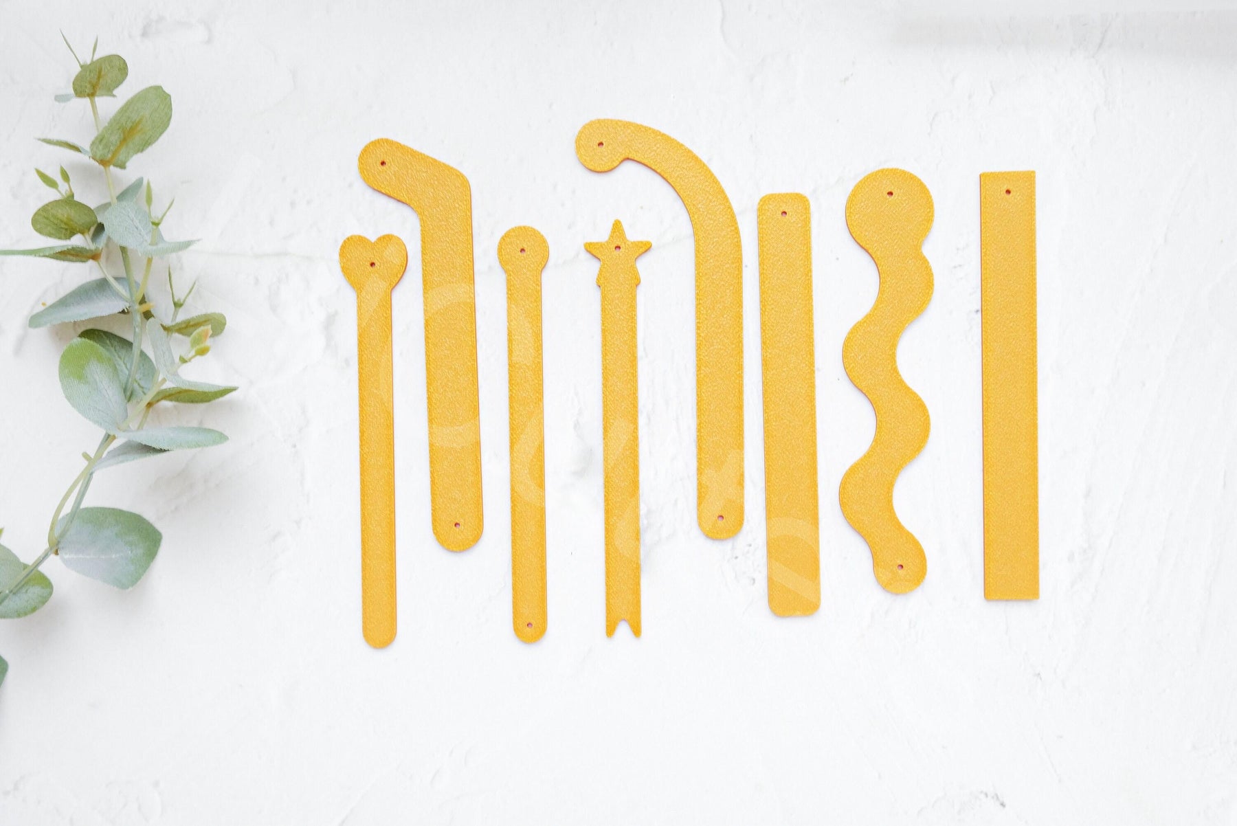 8 different designs, all sticks 12cm tall and 2 to 3mm thick.