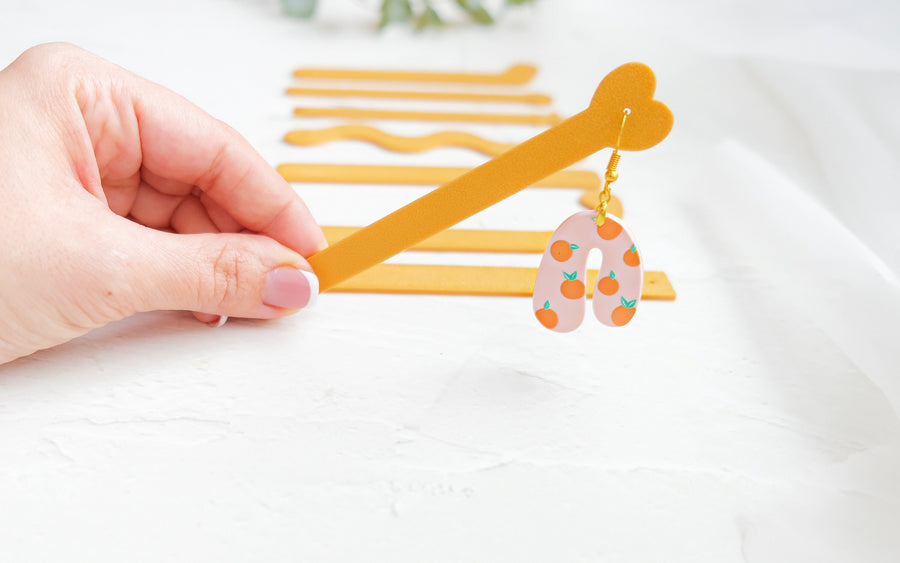 Earrings stick, display stick, earring modelling stick, earring try on stick, earring holder stick, earring photo prop Clear PLA earring display sticks, perfect for showing earrings! Modelling sticks are ideal for holding an earring up to customer / your ear without actually wearing the earring. Bring them to markets so your customers can see how the earrings would look on them without actually trying them on. They are also perfect for your try-on videos on socials or taking product photos for your website! *Colors may vary based on PLA availability. *If you need a specific size cutter or custom order, just send us a message. 8 different designs, all sticks 12cm tall and 2 to 3mm thick.